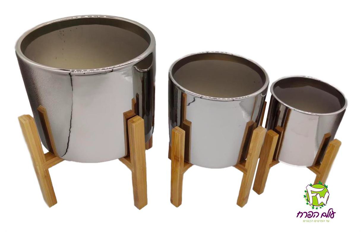 מעמד עץ עם קרמיקה לעציץ 12 כסף
