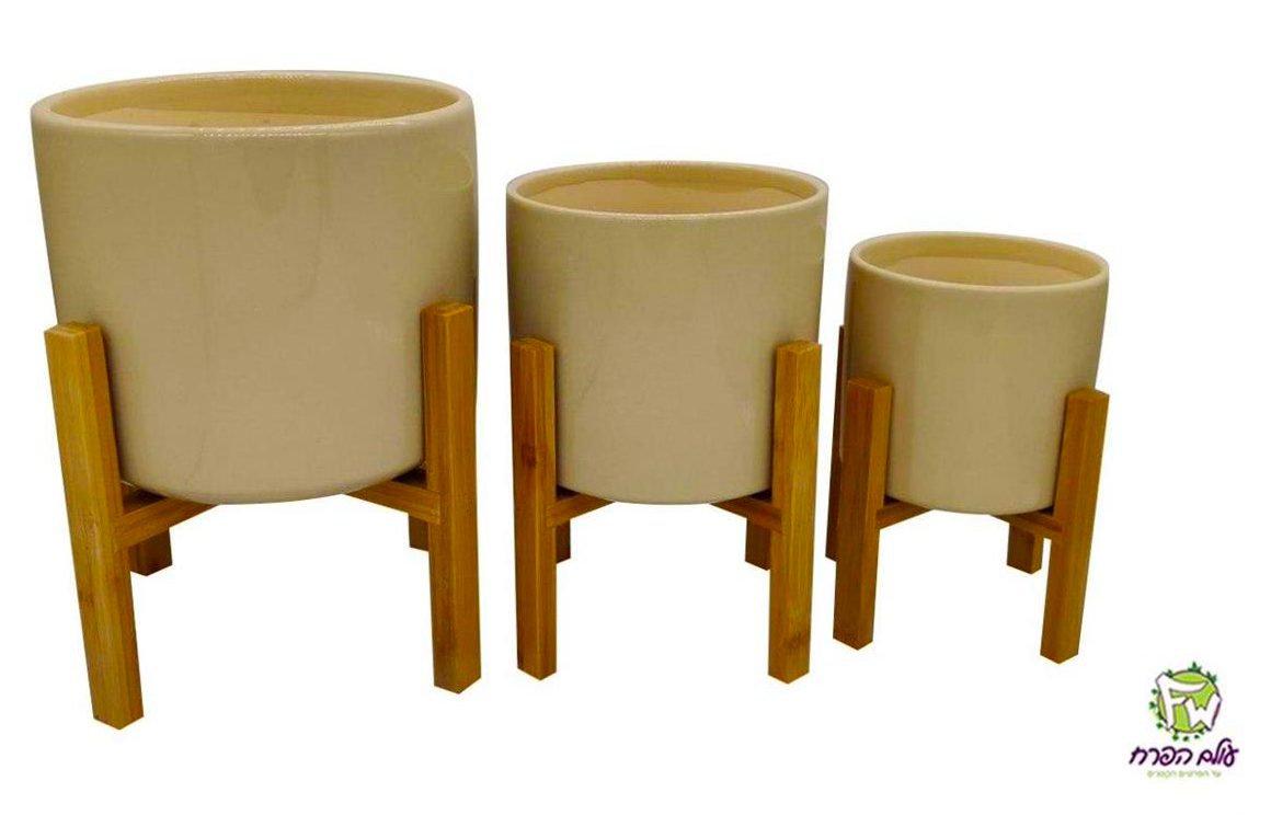 מעמד עץ עם קרמיקה לעציץ 12 קרם