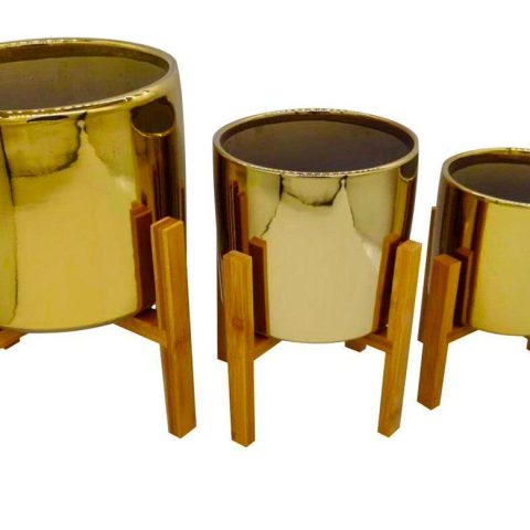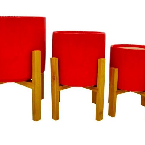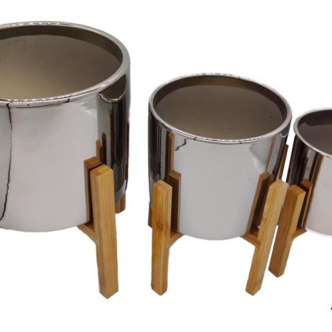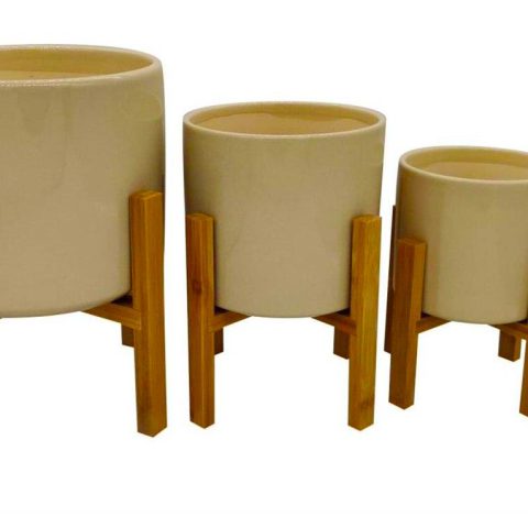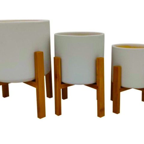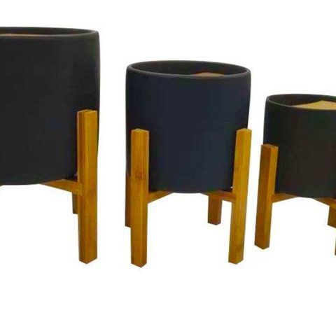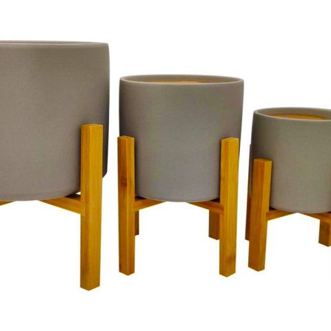 • מעמד עץ עם קרמיקה לעציץ 12 אפור
