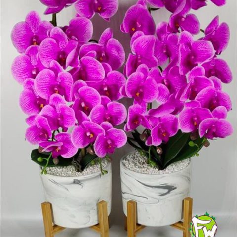 • כלי שיש מעמד עץ עם זוג סחלבים