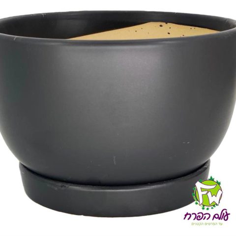 • קרמיקה כדור + תחתית לעציץ 8 שחור מט