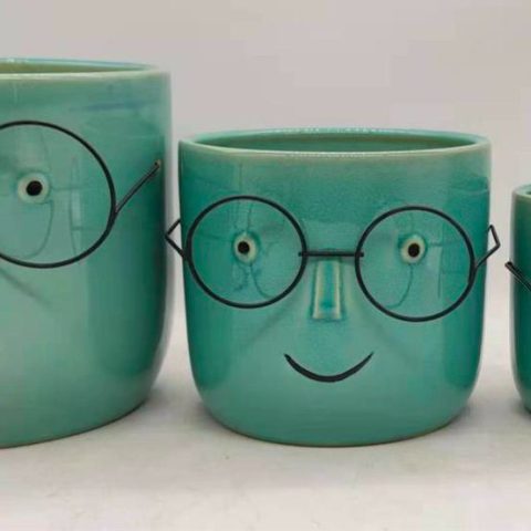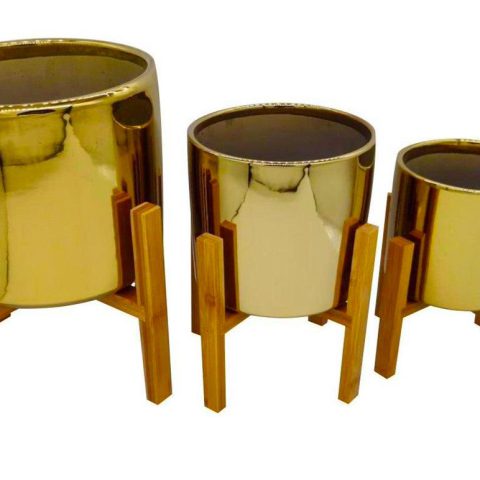 • מעמד עץ עם קרמיקה לעציץ 18 זהב
