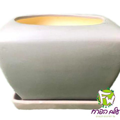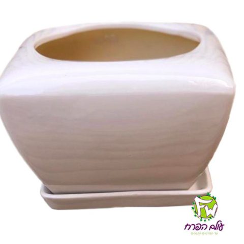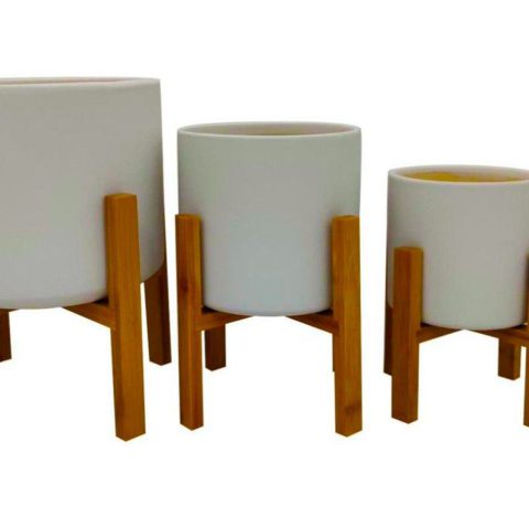 • מעמד עץ עם קרמיקה לעציץ 18 לבן