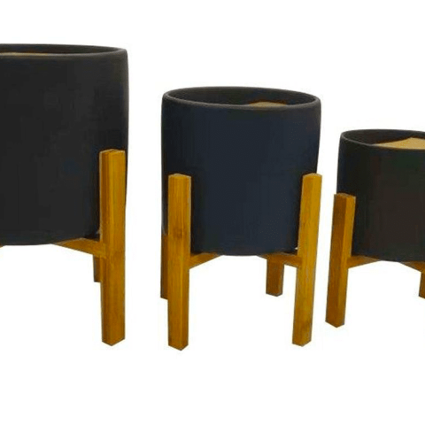 • מעמד עץ עם קרמיקה לעציץ 18 שחור