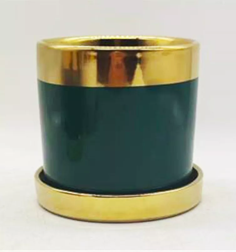 צילינדר לעציץ 12 פס זהב ירוק