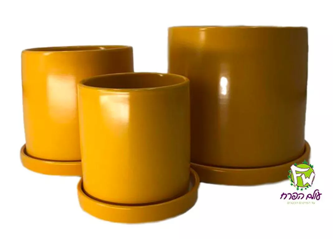 צילינדר +תחתית צהוב עציץ 12