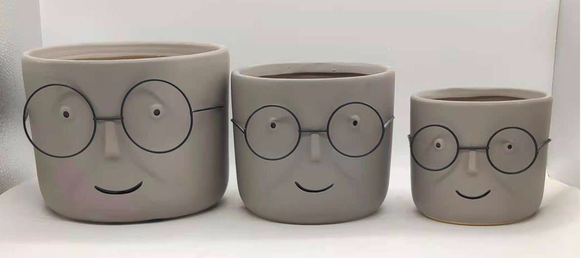קרמיקה משקפיים לעציץ 15 אפור מט