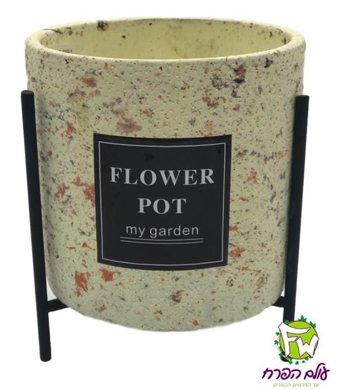 כלי קרמיקה לעציץ 12 עם מעמד מתכת