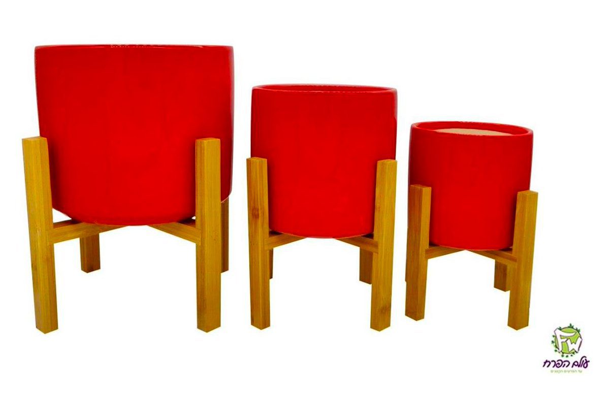 מעמד עץ עם קרמיקה לעציץ 12 RED