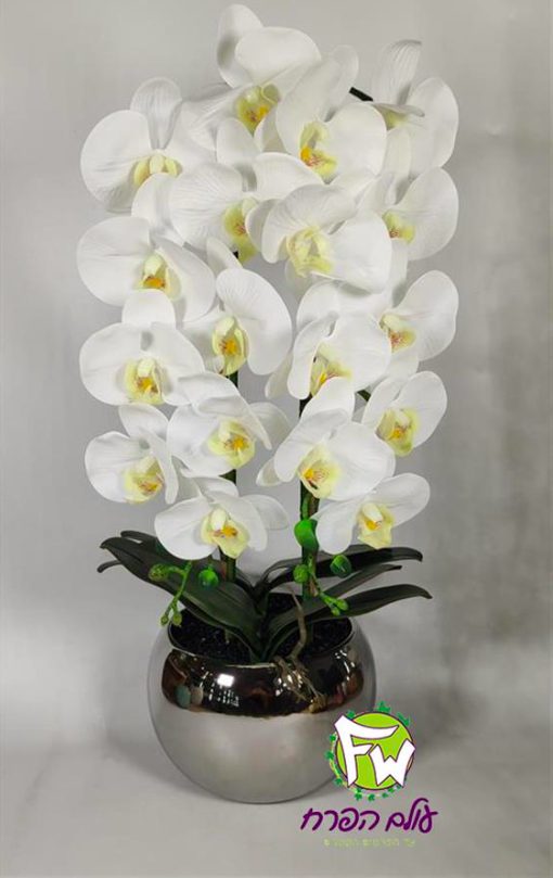 Be the first to review “סחלב זוגותלבן בכלי קרמיקה כסף”