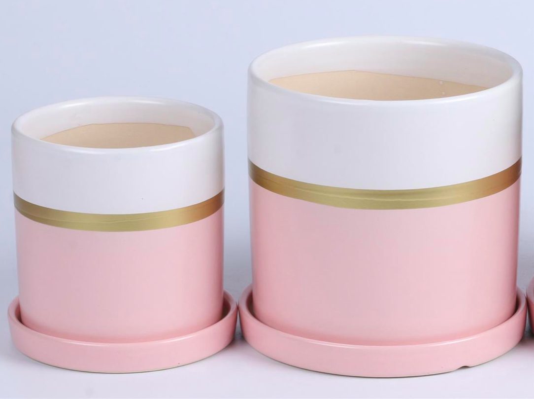 סט 12/15 צילינדר +תחתית לבן ורוד