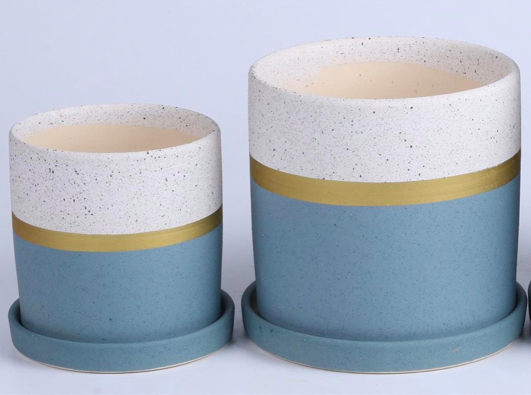 סט 12/15 צילינדר +תחתית לבן נקודות/תכלת