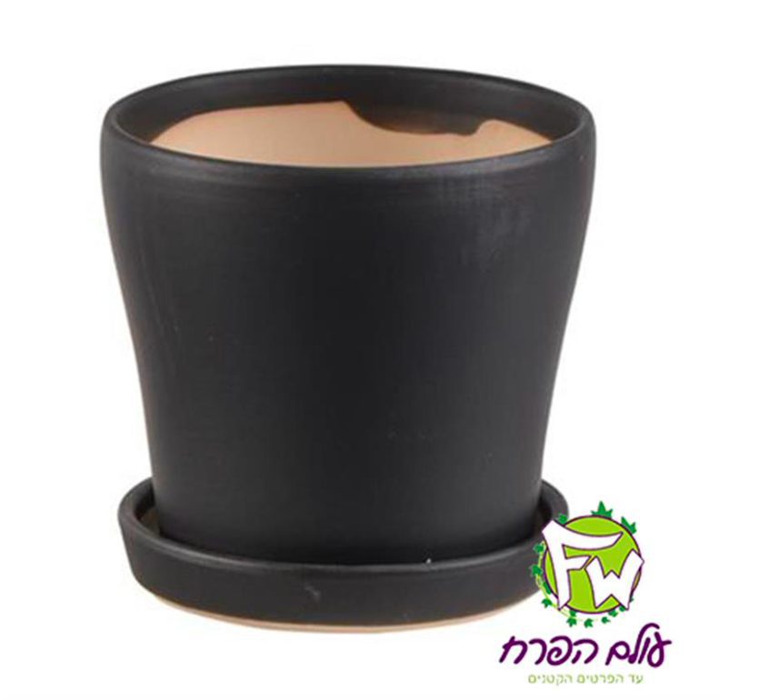 עציץ 15 עם תחתית וגלזורה שחור מט