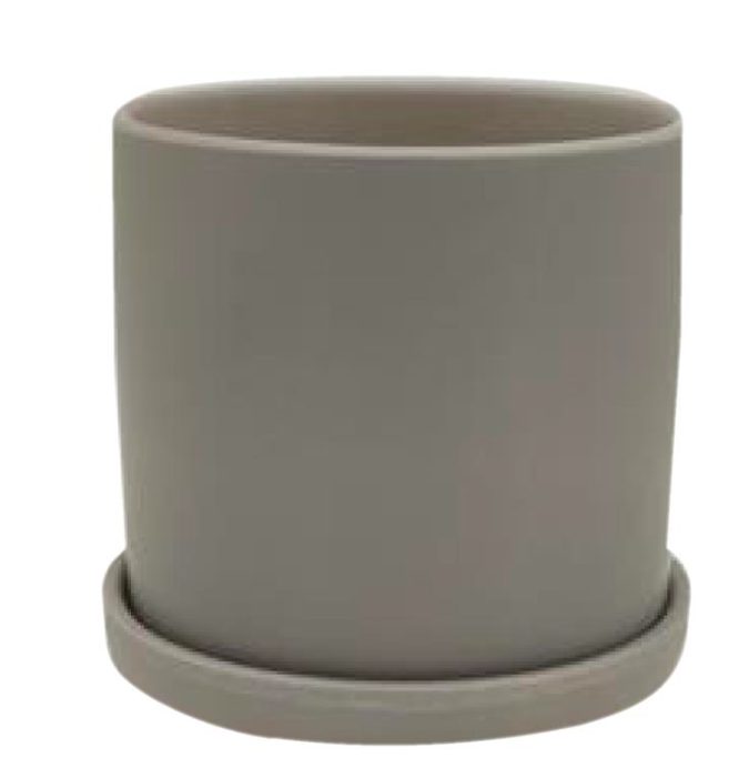 צילינדר לעציץ 12 + תחתית אפור מט